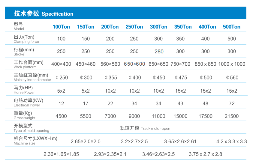 · 軌道開模,掀模角度可達(dá)90度,方便人員操作,適合二層模具使用;